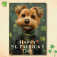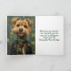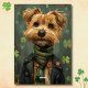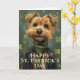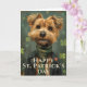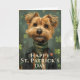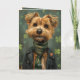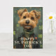 Celebre el Día de San Patricio con esta elegante carta que incluye un terrero deslumbrante con una bufanda verde de yeso y una chaqueta de cuero, rodeado de suertudos rocas de champú y un entorno rústico irlandés. La tipografía cálida de color crema añade un toque atemporal, haciendo de esta tarjeta una forma perfecta de enviar buena fortuna y alegría festiva. En el interior, el mensaje más sincero dice: "¡Adondequiera que vages y lo que sea que hagas, que la suerte y las risas te sigan!" Una manera única y encantadora de desear a alguien un feliz Día de San Patricio.