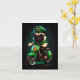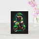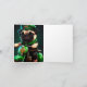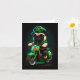Tarjeta Día de San Patricio con perro pug montando bicicle