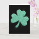 Tarjeta Día de San Patricio de hoja de trébol con brillo d