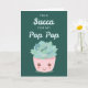 Envíe sus saludos de San Valentín a su pop con esta tarjeta de una suculenta planta al estilo kawaii adorable en una olla y las pegadizas palabras 'Soy una succa de mi pop' en la portada. © Ness Nordberg