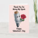 Enciende su corazón con esta lúgubre y puntiaguda tarjeta de San Valentín. Con un encantador personaje de chispa sosteniendo una sola rosa roja, esta tarjeta es perfecta para esa persona especial que mantiene su motor en funcionamiento. Ya sea que estén en autos, herramientas o simplemente les guste un giro inteligente, este diseño único brinda amor con una chispa.