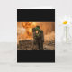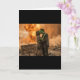 Esta provocativa tarjeta de felicitación ofrece una visión oscura y humorística del amor con un diseño audaz y llamativo que yuxtapone el romance y la catástrofe. La portada presenta una ilustración gráfica y austera de dos personas atrapadas en un beso apasionado, enmarcado en el fondo de una explosión nuclear masiva y estilizada.