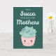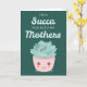 Envíe sus saludos del Día de San Valentín a sus madres con esta tarjeta de una planta suculenta al estilo kawaii adorable en una olla y las pegadizas palabras 'Soy una succa para mis madres' en la portada. © Ness Nordberg