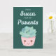 Envíe sus saludos de San Valentín a sus padres con esta tarjeta de una planta suculenta al estilo kawaii adorable en una olla y las pegadizas palabras 'Soy una succa para mis padres' en la portada. © Ness Nordberg