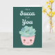 Envíe sus saludos del Día de San Valentín a su persona especial con esta tarjeta de una planta suculenta al estilo kawaii adorable en una olla y las pegadizas palabras 'Soy una succa para usted' en la portada. © Ness Nordberg