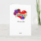 Arte de estilo de tatuaje dibujado a mano. Corazón con rosas y otras flores en púrpura, amarillo, rosa y azul con un banner que dice, 'Te amo'. Puede personalizar cualquiera de los textos de esta tarjeta para agregar un nombre, apodo o un mensaje personal en la parte frontal de la tarjeta o en el interior.