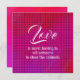 Tarjeta Día de San Valentín Snarky con aspecto de gingham rosa y roja. Diverso dicho: El amor nunca tiene que decirle a alguien que cierre los gabinetes.