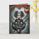 Día de San Valentín con texto totalmente personalizable por dentro y por fuera, para hacerlo propio. Chica lindo con corazones plegados Tarjeta, colores principales rojo y negro, con una mezcla de estilos de arte gótico, victoriano, steampunk, anime, chibi, imagen generada por ai, una tarjeta única para tu especial valentina