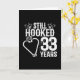 Este divertido diseño del 33 aniversario de bodas es perfecto para parejas de pescadores que llevan 33 años casados y siguen enganchados el uno al otro y aman ir a pescar. Ideal para una fiesta del 33 aniversario de bodas para celebrar 33 años de matrimonio. Cuenta con la cita del aniversario de bodas "Todavía enganchados después de 33 años" con ganchos de pesca en forma de corazón con gráfico de pesca en un diseño de estilo vintage desgastado.