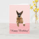 Un lindo Pastor Alemán con Pink Polka de fondo ¡Feliz cumpleaños! Un regalo de cumpleaños perfecto para los amantes del pastor alemán.