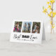 Hermosa tarjeta de felicitaciones por el Día del Padre con un Collage de fotos de tres fotos y un encantador texto de tipografía "Mejor DAD de la historia" en negro. Un lindo corazón rosa claro en el interior de la tarjeta y un mensaje personal con nombres que puedes cambiar, así como las fotos del menú personalizado. Por favor, contáctame para cualquier ayuda.