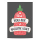 Diseño de cartas luminosas y extravagantes con una botella de salsa picante roja en un fondo amarillo con las palabras "Papá, eres una salsa tan impresionante. Feliz Día del Padre". | Diseño de Shelby Allison