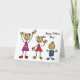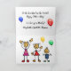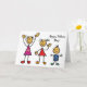 Una imagen colorida de una madre, hija y un hijo pequeño. Una divertida y positiva tarjeta de felicitación del Día del Padre para cualquier persona. Totalmente personalizable. Puedes cambiar imágenes y textos en la parte frontal y en el interior de la tarjeta. Compra una, disfruta y sé feliz!