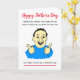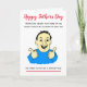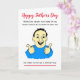 Caricatura divertida de un hombre sonriente para el Día del Padre. El texto actualmente dice 'Cuando papá escuchó que ninguno de sus familiares podía visitarlo... trató de poner una cara valiente', pero puedes personalizar fácilmente esta tarjeta editando el texto de la plantilla. ¡Gracias por ver mis diseños!