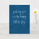 ¡Te deseamos un muy Feliz Día del Padre! Esta tarjeta simple y elegante es perfecta para cualquier papá, abuelo o figura paterna. Personaliza el mensaje interior de esta tarjeta moderna del Día del Padre para un toque personalizado. La escritura blanca en la parte frontal es moderna y elegante sobre el fondo azul texturizado. El interior presenta texto azul coordinado. Encuentra más estilos y colores de Lea Delaveris Design.