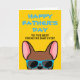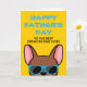 Frenchies, ¿qué mejor manera de mostrarle a tu Papá cuánto lo amas este Día del Padre con una tarjeta personalizada solo de ti! El diseño presenta una ilustración estilo caricatura de un bulldog francés color cervatillo rojo con gafas de sol azules y la leyenda "¡Feliz Día del Padre al mejor Papá Frenchie de todos!" escrita en la parte frontal. El interior de la tarjeta dice "Para Papá, te amo más que golosinas" pero se puede cambiar a la redacción que elijas.
