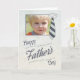 Elegante tarjeta del Día del Padre que es personalizable con tu foto en la portada. Una corbata rayada y un fondo texturado es un sentimiento perfecto para darle a tu padre en este día especial. Diseño © 2015 Julia Bryant.