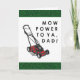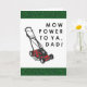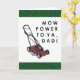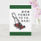 Divertida tarjeta del Día del Padre para el padre que trabaja en el patio con juego de palabras creativo.