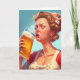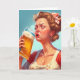 Mujer divertida a punto de beberse una cerveza de un trago. Humor de ama de casa divertido. ¡Feliz Día de la Madre!