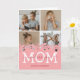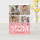 Tarjeta de felicitación personalizada del Día de la Madre con 4 fotos de los niños, un diseño de corazón rosa lindo, el dicho "te amamos mamá", y los nombres de los niños.