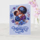 Captura la esencia del amor con nuestra impresionante tarjeta del Día de la Madre con filigrana floral. Con una ilustración conmovedora de una joven mamá afroamericana y su adorable hijo de dos años, vestidos con atuendos morados y azules a juego, compartiendo un dulce beso. Perfecta para mamás, mamás adicionales, mamás adoptivas, este diseño encarna el tema de renovación y amor de la primavera. Personalice con su propio mensaje si lo desea. ©2024 Miss Sassy Party Designs