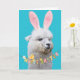Llama blanca con orejas de conejito blanco con la imagen de "¡Feliz Pascua!". Sí, esta carta ha sido "llamada en llama". Si eso es demasiado raro, siempre puedes editar la copia interior. :)
