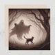 Tarjeta Dibujo de fantasma y gato en el bosque de terror e