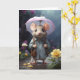 Adorable ratoncito con paraguas y flores amarillas. Alegrar el día de alguien con esta tarjeta de felicitación en blanco para cumpleaños, aniversario, nuevo bebé, gracias, pésame, etc.
