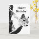 Esta sencilla tarjeta de felicitación en blanco y negro presenta una ardilla asomando desde el lado de un árbol, y la leyenda editable “Feliz Cumpleaños”. El interior dice “Que tengas un gran día” Perfecta para amigos o familiares.