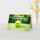 La tarjeta presenta un fondo de bonita capa que añade profundidad y ambiente a la escena. En la parte inferior, la sombra es suave y verde claro, que recuerda al color de la hierba fresca de primavera. A medida que la vista se mueve hacia arriba, el tono se va profundizando en un verde oscuro y rico, que recuerda a una pista de tenis bien cuidada. En el centro de la carta, una pelota de tenis verde peludo muy realista ocupa el centro del escenario. Su textura es tan realista que casi parece listo para rebotar de la página. Al lado de la bola, un animado arco verde cal le da un toque divertido. El contraste entre la textura peluda y la superficie lisa y brillante del arco crea una interesante dinámica visual. A lo lejos, un efecto de bokeh suave crea una sensación de profundidad y añade un toque mágico al fondo. Insinúa la emoción y el movimiento asociados con un animado partido de tenis. En la parte superior de la tarjeta, en un tono elegante y audaz, el texto personalizado dice: "Cumpleaños que rompe", seguido del nombre del destinatario. Esta frase capta la energía vibrante de un partido de tenis y también transmite cálidos deseos de cumpleaños. Esta tarjeta combina maravillosamente la emoción del tenis con la alegría de una celebración de cumpleaños, creando una obra maestra visual que seguro hará especial el cumpleaños de cualquier aficionado al tenis.