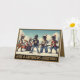 Dinosaur themed Christmas card for fans of velociraptor dinosaurs, rap music and amusing Christmas cards featuring a band of velociraptor dinosaur rappers.