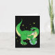 Tarjeta Dinosaurio infantil sosteniendo el planeta Día de