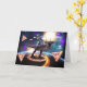 Tarjeta Dinosaurio unicornio de cabalgatas en el espacio