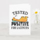 Diseño lindo y divertido con una Jirafa durmiendo perezosa y la cita "Dio positivo por pereza". Bueno para jóvenes y mayores.