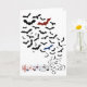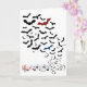 Barra de música con notas al cráneo en rojo oscuro, azul y negro, abriendo y con muchos murciélagos volando.