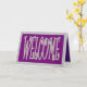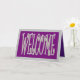 Tarjeta de bienvenida morada y gris en el exterior interior púrpura y rojo del vino