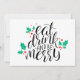 Difunde alegría esta temporada con el diseño de Come, Bebe y Alégrate que presenta acentos festivos de acebo y un mensaje alegre. Perfecto para crear decoraciones navideñas o regalos que inspiren buenos momentos y celebraciones.