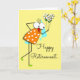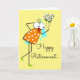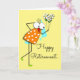 Tarjeta de retiro general, pájaro caprichoso sosteniendo un ramo de margaritas, "Feliz Jubilación". Un pájaro adorable y divertido seguramente traerá una sonrisa.
