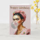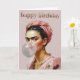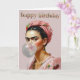Diva con bufanda floral soplando chicle Feliz Cumpleaños decorativo con diseño floral en la parte frontal e interior