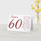 Tarjeta Diversión, cumpleaños 60 para hermana, texto rojo