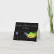 una tarjeta para un niño interesado en el espacio o los dinosaurios un personalizado gracioso de un OVNI que golpea un asteroide cerca de la tierra, en la nave un alien dice "cuidado hijo de esa manera perdimos los dinosaurios". Buena tarjeta de diversión para el día de la ciencia.