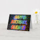 Este vibrante, multicolor y divertido diseño de tarjetas de felicitación de cumpleaños incluye el mensaje "FELIZ CUMPLEAÑOS", y el nombre común "BIANCA" con las letras que tienen un colorido espectro de arco iris como patrón de color gradiente. El fondo del frente también presenta un patrón colorido inspirado en la apariencia de fuegos artificiales que rompen. En el interior aparece un mensaje de saludo de personalizado, o tal vez se pueda borrar y dejar en blanco si se va a escribir un mensaje a mano. Una tarjeta de felicitación como esta podría ser una manera divertida de celebrar el cumpleaños de alguien llamado Bianca. [~Z0000350]