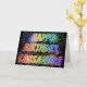 Este diseño multicolor y divertido de tarjetas de felicitación de cumpleaños incluye el mensaje "FELIZ CUMPLEAÑOS", y el nombre común "CASSANDRA" con las letras que tienen un colorido espectro de arcoiris como el patrón de color gradiente. El fondo del frente también presenta un patrón colorido inspirado en la apariencia de los fuegos artificiales de celebración que estallan. En el interior aparece un mensaje de saludo de personalizado, o tal vez se pueda borrar y dejar en blanco si se va a escribir un mensaje a mano. Una tarjeta de felicitación de cumpleaños como esta podría ser una manera divertida de reconocer el cumpleaños de alguien llamado Cassandra. [~Z0000350]