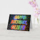 Este divertido, vibrante y multicolor diseño de tarjetas de felicitación de cumpleaños incluye el mensaje "FELIZ CUMPLEAÑOS", y el nombre común "OLIVER" con las letras que tienen un colorido espectro arcoiris como patrón de color gradiente. El fondo del frente también presenta un patrón colorido inspirado en la apariencia de fuegos artificiales que rompen. El interior presenta un mensaje de saludo personalizado, o tal vez se pueda borrar y dejar en blanco si se va a escribir un mensaje a mano. Una tarjeta de felicitación de cumpleaños como esta podría ser una manera divertida de enviar un mensaje de bienvenida de cumpleaños de personalizable a alguien llamado Oliver. [~Z0000350]