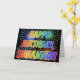 Este divertido, vibrante y multicolor diseño de tarjetas de felicitación de cumpleaños incluye el mensaje "FELIZ CUMPLEAÑOS", y el nombre común "SAVANNAH" con las letras que tienen un colorido espectro de arcoiris como patrón de color gradiente. El fondo del frente también presenta un patrón colorido inspirado en la apariencia de los fuegos artificiales de celebración que estallan. En el interior aparece un mensaje de saludo de personalizado, o tal vez se pueda borrar y dejar en blanco si se va a escribir un mensaje a mano. Una tarjeta de felicitación como esta podría ser una manera divertida de celebrar el cumpleaños de alguien llamado Savannah. [~Z0000350]