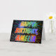 Estas características de la diversión, vibrantes, multicoloras del cumpleaños de felicitación de la tarjeta del diseño el mensaje "FELIZ CUMPLEAÑOS," y el nombre común "AMELIA" con las letras que tienen un espectro colorido del arco iris tienen gusto del modelo del colorante de la pendiente. El fondo del frente también ofrece un modelo colorido inspirado por la mirada de estallar los fuegos artificiales celebradores. Las características interiores un mensaje de saludo personalizado, o se podrían quizás despejar y salieron del espacio en blanco si se va un mensaje a ser escrito a mano en lugar de otro. Esto pudo ser una manera de la diversión de reconocer el cumpleaños alguien Amelia nombrada. [~Z0000350]