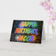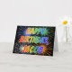 Estas características multicoloras y de la diversión del cumpleaños de felicitación de la tarjeta del diseño el mensaje "FELIZ CUMPLEAÑOS," y el nombre común "JACOB" con las letras que tienen un espectro colorido del arco iris tienen gusto del modelo del colorante de la pendiente. El fondo del frente también ofrece un modelo colorido inspirado por el aspecto de estallar los fuegos artificiales celebradores. Las características interiores un mensaje adaptable del saludo, o se podrían quizás despejar y salieron del espacio en blanco si se va un mensaje a ser escrito a mano en lugar de otro. Una tarjeta de felicitación como esto podía ser una manera de la diversión de celebrar el cumpleaños alguien Jacob nombrado. [~Z0000350]