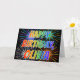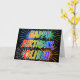 Estas características vibrantes, multicoloras y de la diversión del cumpleaños de felicitación de la tarjeta del diseño el mensaje "FELIZ CUMPLEAÑOS," y el nombre común "OLIVIA" con las letras que tienen un espectro colorido del arco iris tienen gusto del modelo del colorante de la pendiente. El fondo del frente también ofrece un modelo inspirado los fuegos artificiales que estalla colorido. Las características interiores un mensaje de encargo del saludo, o se podrían quizás despejar y salieron del espacio en blanco si se va un mensaje a ser escrito a mano en lugar de otro. Una tarjeta de felicitación del cumpleaños como esto podía ser una manera de la diversión de enviar un mensaje adaptable del saludo del cumpleaños alguien a Olivia nombrada. [~Z0000350]