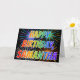 Estas características vibrantes, multicoloras y de la diversión del cumpleaños de felicitación de la tarjeta del diseño el mensaje "FELIZ CUMPLEAÑOS," y el nombre común "SAMANTHA" con las letras que tienen un espectro colorido del arco iris tienen gusto del modelo del colorante de la pendiente. El fondo del frente también ofrece un modelo colorido inspirado por el aspecto de estallar los fuegos artificiales celebradores. Las características interiores un mensaje de saludo personalizado, o se podrían quizás despejar y salieron del espacio en blanco si se va un mensaje a ser escrito a mano en lugar de otro. Una tarjeta de felicitación del cumpleaños como esto podía ser diversión para dar alguien a Samantha nombrada en su cumpleaños. [~Z0000350]