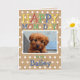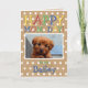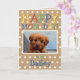 Única, clásica, linda y colorida tarjeta de felicitación del Día de la Madre. Con espacio para personalizar o personalización con su perro de familia, gato u otro mascota foto y nombre de su elección. En un divertido patrón de puntos de polka blanco sobre una textura de papel Kraft marrón mirando al fondo.